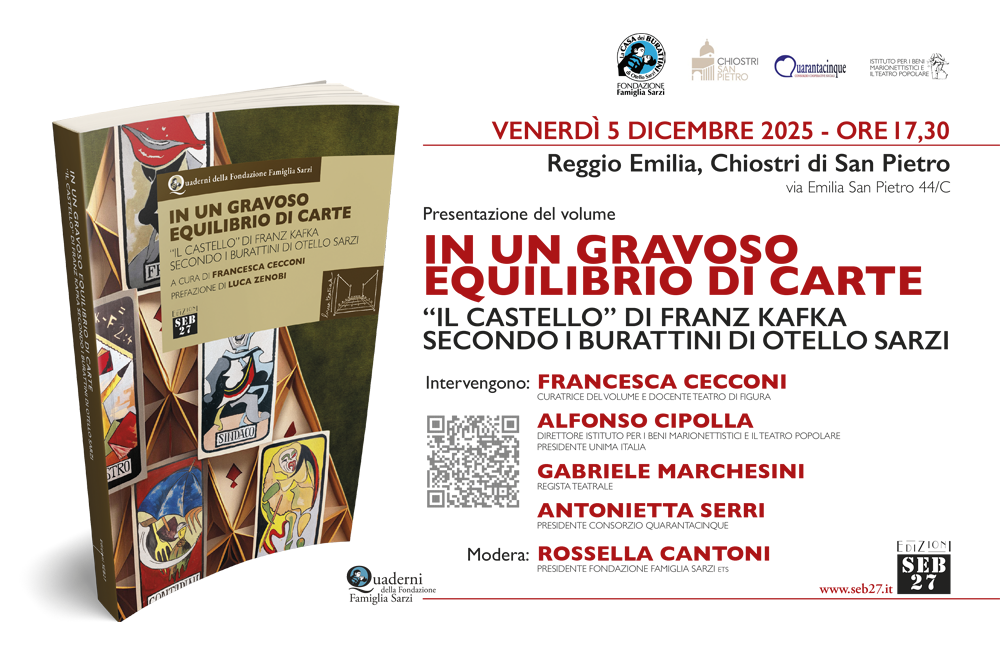 Intervengono: FRANCESCA CECCONI (Curatrice del volume e docente teatro di figura), ALFONSO CIPOLLA (Direttore Istituto per i beni marionettistici e il teatro popolare e presidente Unima italia), GABRIELE MARCHESINI (Regista teatrale), ANTONIETTA SERRI (Presidente Consorzio Quarantacinque) – Modera: ROSSELLA CANTONI (Presidente Fondazione Famiglia Sarzi)